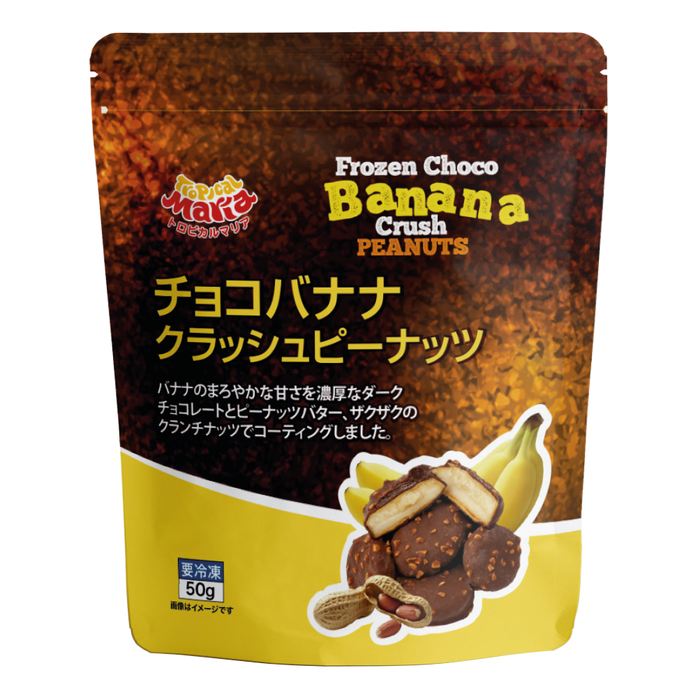 バナナのまろやかな甘さを、濃厚なダークチョコレートとピーナッツバター、ザクザクのクランチナッツでコーティングしました。