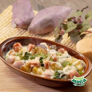 いつものホットケーキにトロピカルマリアのさつまいもダイスをプラスすると、ホクホクで満足感のあるホットケーキになります。トロピカルマリアのさつまいもはダイス状で冷凍されているので必要な分だけ解凍して使用することが出来てとても便利です(材料2人分)